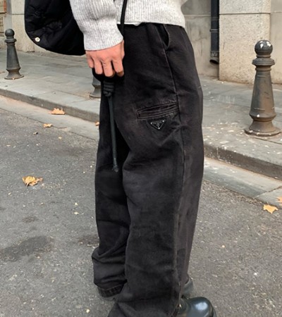 [홍콩명품,PRADA] 프라다 24SS 삼각로고 오버핏 데님 팬츠 진 청바지 (블랙), BM17351, JL, 홍콩명품의류,구매대행,온라인명품 > 남자의류
