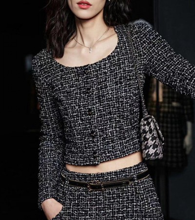• [홍콩명품.CHANEL] 샤넬 24SS 로고 여성 라운드넥 트위드 자켓 (블랙), BM17520, PG, 홍콩명품의류,구매대행,온라인명품