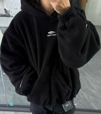 [홍콩명품.BALENCIAGA] 발렌시아가 25SS 스포티로고 자수 플리스 후드 티셔츠 (블랙), BM18125, JU, 홍콩명품의류,구매대행,온라인명품 > 남자의류