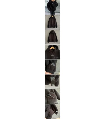 [홍콩명품.BALENCIAGA] 발렌시아가 25SS 스포티로고 자수 플리스 후드 티셔츠 (블랙), BM18125, JU, 홍콩명품의류,구매대행,온라인명품 요약정보 및 구매