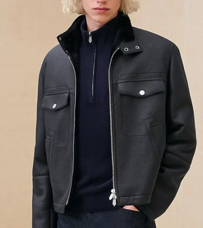 • [홍콩명품.Hermes] 에르메스 25SS 로고 터틀넥 레더 가죽 자켓 (블랙), BM18277, TOM, 홍콩명품의류,구매대행,온라인명품