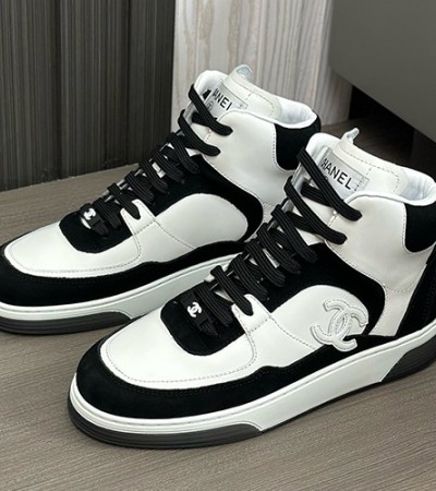 • [홍콩명품.CHANEL] 샤넬 25SS 로고 레더 가죽 하이탑 스니커즈 운동화 (화이트-블랙), SE4480, S3, 명품스니커즈,운동화,구두,로퍼,하이탑,신발
