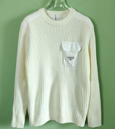• [홍콩명품,PRADA] 프라다 25SS 삼각로고 나일론 포켓 니트 스웨터 (아이보리), BM18377, JL, 홍콩명품의류,구매대행,온라인명품