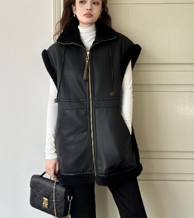• [홍콩명품.LOUIS VUITTON] 루이비통 25SS 로고 여성 퍼카라 레더 가죽 조끼 베스트 (블랙), BM18423, TBG, 홍콩명품의류,구매대행,온라인명품