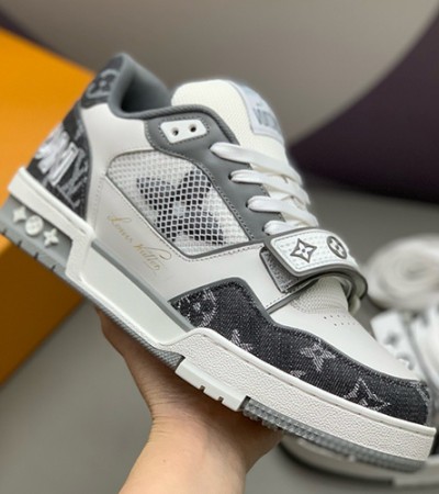 [홍콩명품.LOUIS VUITTON] 루이비통 25SS 로고 모노그램 데님 트레이너 스니커즈 운동화 (화이트-블랙-그레이), SE4556, PMD, 명품스니커즈,운동화,구두,로퍼,하이탑,신발 > 신발