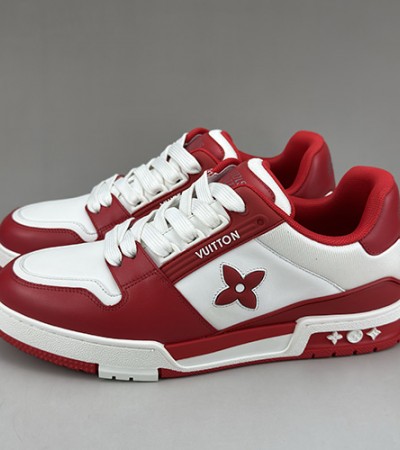 • [홍콩명품.LOUIS VUITTON] 루이비통 25SS 로고 모노그램 트레이너 스니커즈 운동화 (화이트-레드), SE4577, S3, 명품스니커즈,운동화,구두,로퍼,하이탑,신발