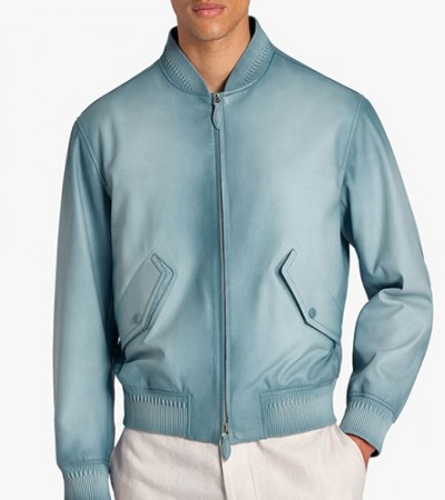 • [홍콩명품.BERLUTI] 벨루티 25SS 로고 레더 가죽 봄버 자켓 (스카이블루), BM19784, TOM, 홍콩명품의류,구매대행,온라인명품