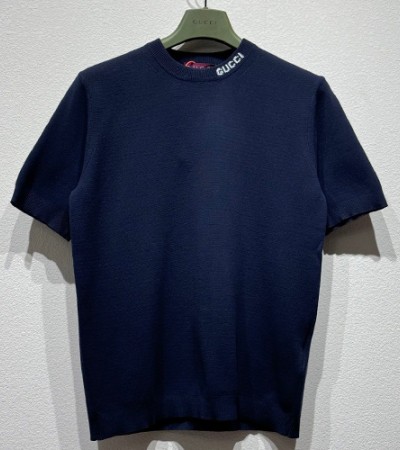 • [홍콩명품.Gucci] 구찌 25SS 로고 니트 반팔 티셔츠 (네이비), BM19796, KB, 홍콩명품의류,구매대행,온라인명품