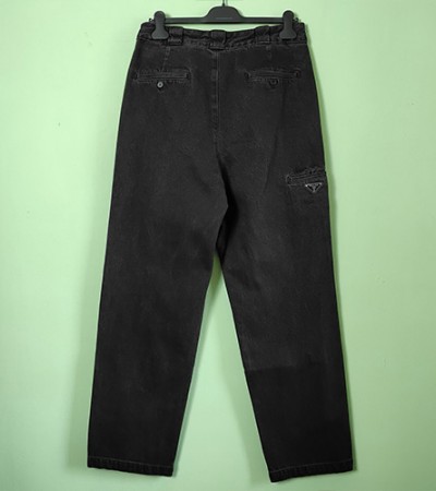 • [홍콩명품,PRADA] 프라다 25SS 삼각로고 오버핏 워싱 데님 팬츠 진 청바지 (블랙), BM20339, JL, 홍콩명품의류,구매대행,온라인명품
