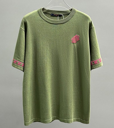 • [홍콩명품.LOUIS VUITTON] 루이비통 25SS 로고 니트 반팔 티셔츠 (그린), BM20687, JU, 홍콩명품의류,구매대행,온라인명품