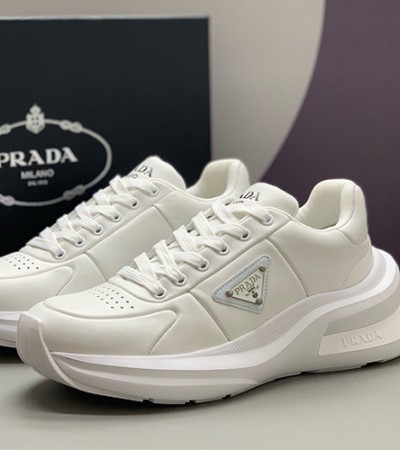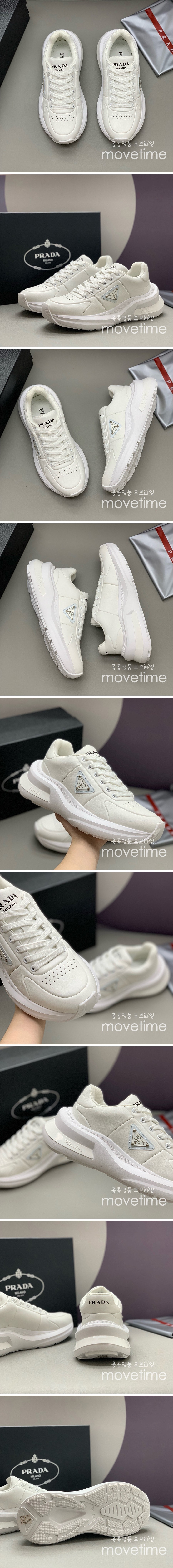 • [홍콩명품,PRADA] 프라다 25SS 삼각로고 레더 가죽 스니커즈 운동화 (화이트), SE4912, PMD, 명품스니커즈,운동화,구두,로퍼,하이탑,신발