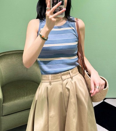 • [홍콩명품,PRADA] 프라다 25SS 로고 여성 스트라이프 니트 런닝 탑 티셔츠 (블루), BM20788, TBG, 홍콩명품의류,구매대행,온라인명품
