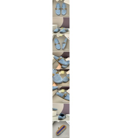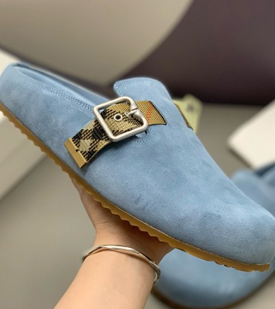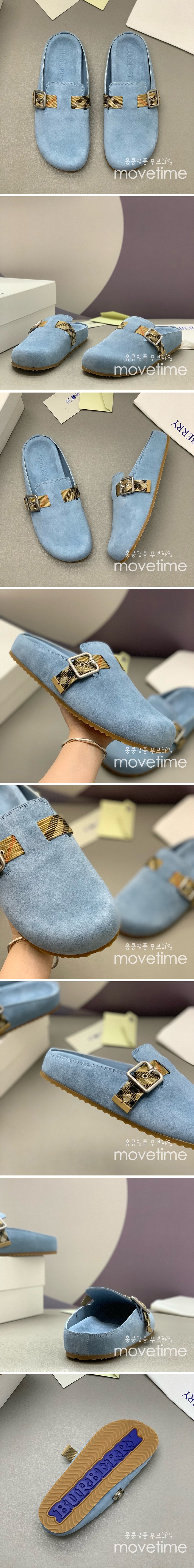 • [홍콩명품.Burberry] 버버리 25SS 로고 레더 가죽 바겐스탁 슬리퍼 (스카이블루), SE4941, PMD, 명품스니커즈,운동화,구두,로퍼,하이탑,신발