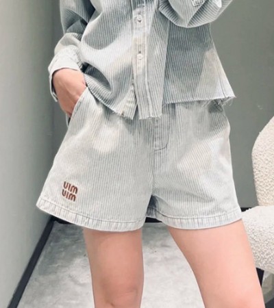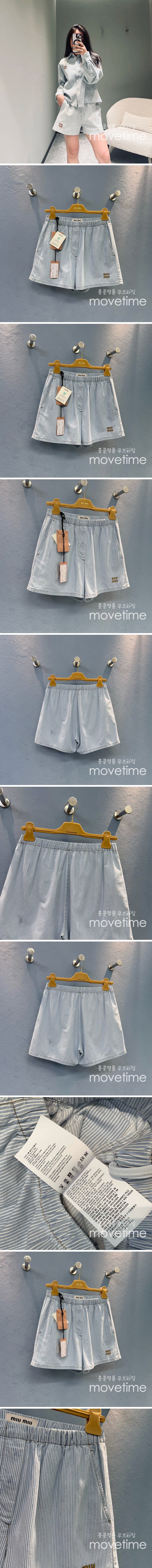[명품레플리카,MIU MIU] 미우미우 25SS 로고 자수 여성 스트라이프 쇼츠 반바지 (스카이블루), BM20877, 13C, 홍콩명품의류,구매대행,온라인명품 요약정보 및 구매