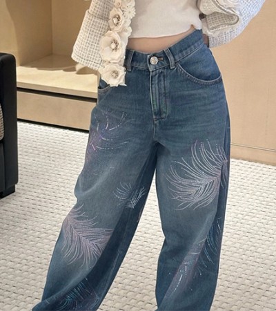 [홍콩명품.CHANEL] 샤넬 25SS 로고 여성 오버핏 스터드 장식 데님 팬츠 진 청바지, BM20878, 13C, 홍콩명품의류,구매대행,온라인명품 > 여성몰
