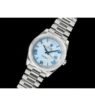 롤렉스 데이-데이트의 매우 고급스럽고 특별한 버전으로  특히 아이스 블루 다이얼과 플래티넘 또는 화이트 골드 소재의 조합은 롤렉스 컬렉터들 사이에서도 높은 가치와 희소성을 인정받는 모델입니다. 클래식하면서도 우아하며, 착용자의 품격을 높여줄 수 있는 아이코닉한 타임피스입니다.