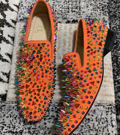 • [홍콩명품.Christian Louboutin] 크리스챤루부탱 25SS 로고 레더 가죽 로퍼 구두 (오렌지-컬러플 장식), SE5056, S3, 명품스니커즈,운동화,구두,로퍼,하이탑,신발