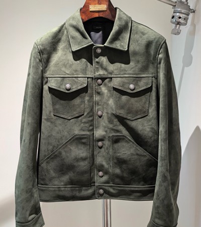 • [홍콩명품.TOM FORD] 톰포드 25SS 로고 레더 가죽 카라 자켓 (카키), BM21107, TOM, 홍콩명품의류,구매대행,온라인명품