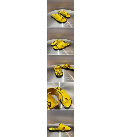 • [홍콩명품.Hermes] 에르메스 25SS 로고 그래픽 이즈미르 레더 가죽 슬리퍼 (노랑), SE5198, GHS, 명품스니커즈,운동화,구두,로퍼,하이탑,신발