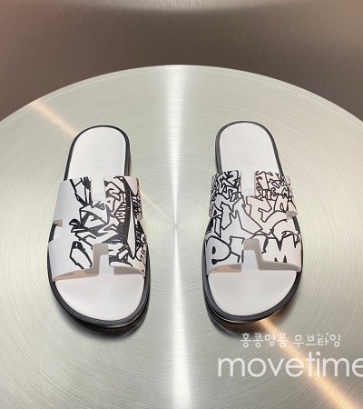 • [홍콩명품.Hermes] 에르메스 25SS 로고 그래픽 이즈미르 레더 가죽 슬리퍼 (화이트), SE5199, GHS, 명품스니커즈,운동화,구두,로퍼,하이탑,신발
