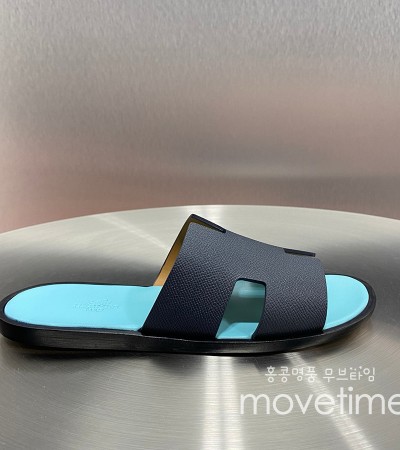 [홍콩명품.Hermes] 에르메스 25SS 로고 이즈미르 레더 가죽 슬리퍼 (블랙-스카이블루), SE5216, GHS, 명품스니커즈,운동화,구두,로퍼,하이탑,신발 요약정보 및 구매
