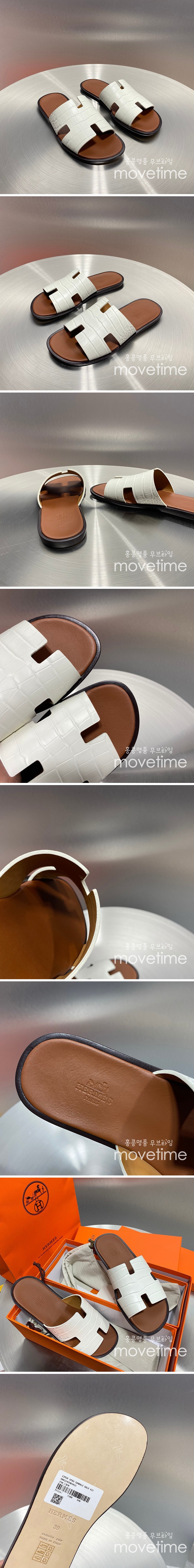 [홍콩명품.Hermes] 에르메스 25SS 로고 이즈미르 레더 가죽 슬리퍼 (화이트-브라운), SE5219, GHS, 명품스니커즈,운동화,구두,로퍼,하이탑,신발 요약정보 및 구매