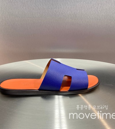 [홍콩명품.Hermes] 에르메스 25SS 로고 이즈미르 레더 가죽 슬리퍼 (블루-오렌지), SE5223, GHS, 명품스니커즈,운동화,구두,로퍼,하이탑,신발 > 신발