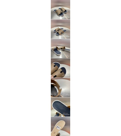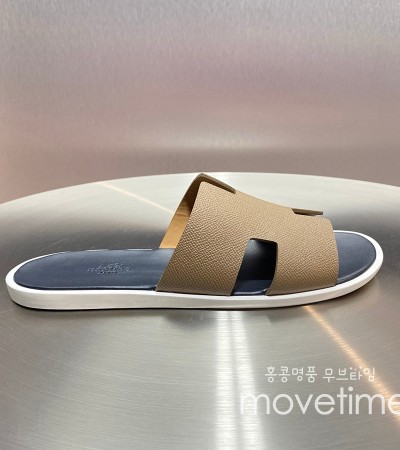 [홍콩명품.Hermes] 에르메스 25SS 로고 이즈미르 레더 가죽 슬리퍼 (브라운-네이비), SE5224, GHS, 명품스니커즈,운동화,구두,로퍼,하이탑,신발 > 신발