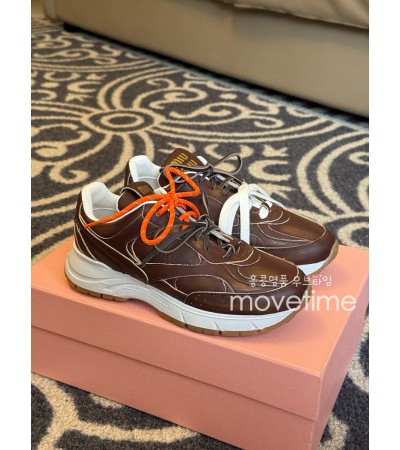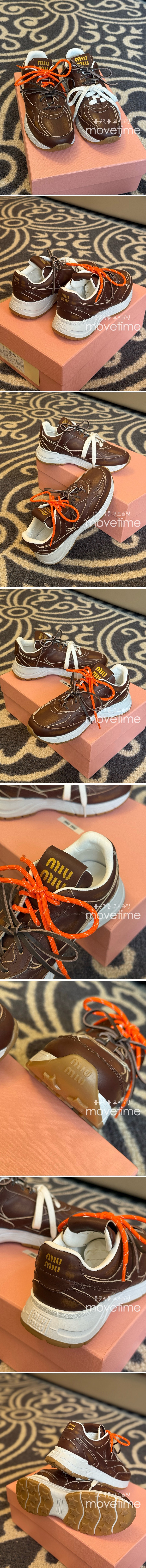 • [홍콩명품,MIU MIU] 미우미우 25SS 로고 여성 뉴발란스 콜라보 레더 가죽 스니커즈 운동화 (브라운), SE5297, GHS, 명품스니커즈,운동화,구두,로퍼,하이탑,신발