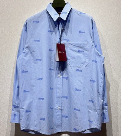 • [홍콩명품.Gucci] 구찌 25SS 로고 패턴 스트라이프 남방 셔츠 (스카이블루), BM21304, CR3, 명품레플리카,미러급,온라인쇼핑몰사이트