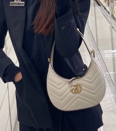 [홍콩명품.Gucci] 구찌 25SS 로고 GG 마몽 하프 문 쉐이프 미니백 화이트 레더 699514, BGM5030, GU2, 홍콩명품가방,명품쇼핑몰,크로스백,핸드백,구매대행 > 가방