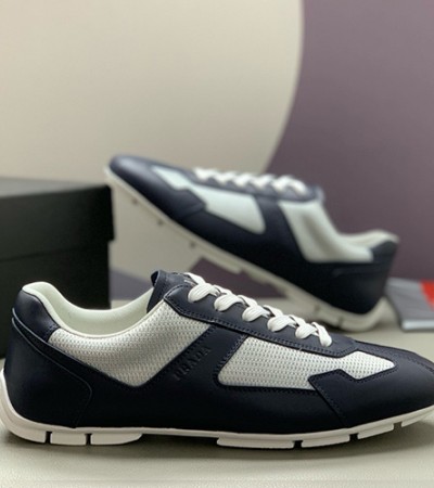 • [홍콩명품,PRADA] 프라다 25SS 삼각로고 레더 가죽 스니커즈 운동화 (네이비-화이트), SE5345, PMD, 명품스니커즈,운동화,구두,로퍼,하이탑,신발