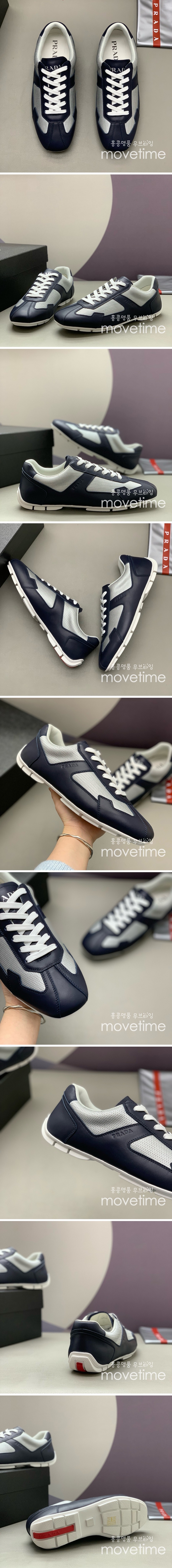 [홍콩명품,PRADA] 프라다 25SS 삼각로고 레더 가죽 스니커즈 운동화 (네이비-화이트), SE5345, PMD, 명품스니커즈,운동화,구두,로퍼,하이탑,신발 요약정보 및 구매