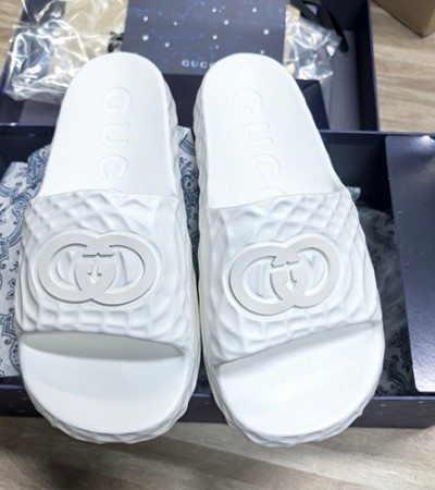 • [홍콩명품.Gucci] 구찌 25SS 로고 러버 슬라이드 슬리퍼 770801 (화이트), SE5369, ALW, 명품스니커즈,운동화,구두,로퍼,하이탑,신발