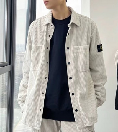 • [홍콩명품.Stone Island] 스톤아일랜드 25SS 로고 탈부착 코드류이 골덴 남방 셔츠 (아이보리), BM21870, KB, 레플리카의류,미러급사이트