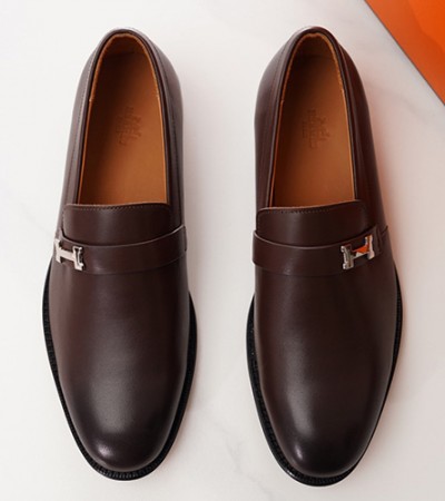 • [홍콩명품.Hermes] 에르메스 25SS 로고 레더 가죽 정장 구두 (브라운), SE5424, S4, 명품스니커즈,운동화,구두,로퍼,하이탑,신발