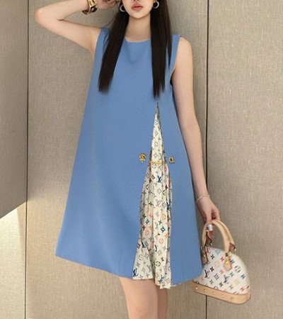 • [홍콩명품.LOUIS VUITTON] 루이비통 25SS 로고 여성 모노그램 슬리브리스 원피스 (블루), BM21945, MC, 레플리카의류,미러급사이트