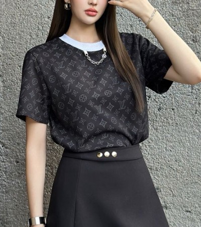 • [홍콩명품.LOUIS VUITTON] 루이비통 25SS 로고 여성 모노그램 반팔 티셔츠 (블랙), BM21979, MC, 레플리카의류,미러급사이트