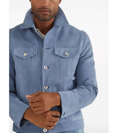 [홍콩명품.Brunello Cucinelli ] 브루넬로 쿠치넬리 25SS 로고 레더 가죽 카라 자켓 (스카이블루), BM22077, TOM, 레플리카의류,미러급사이트 > 남자의류