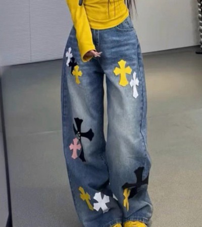 • [홍콩명품.Chrome Hearts] 크롬하츠 25SS 로고 여성 오버핏 데님 팬츠 진 청바지, BM22183, JL, 레플리카의류,미러급사이트