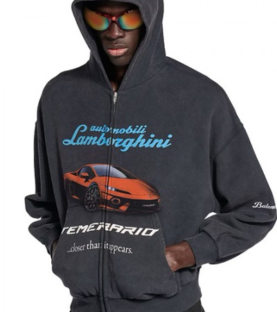 • [홍콩명품.BALENCIAGA] 발렌시아가 25SS 로고 Lamborghini 워싱 후드 집업 자켓, BM22333, KK, 레플리카의류,미러급사이트