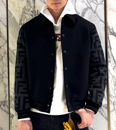 • [홍콩명품,FENDI] 펜디 25SS 로고 카라 바시티 자켓 (블랙), BM22368, SS, 레플리카의류,미러급사이트