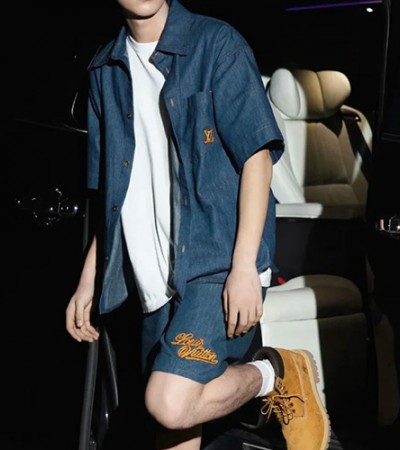 • [홍콩명품.LOUIS VUITTON] 루이비통 25SS 로고 자수 데님 반팔 남방 셔츠 + 데님 쇼츠 반바지 상하의 세트, BM22418, KB, 레플리카의류,미러급사이트
