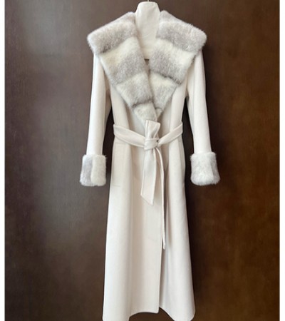• [홍콩명품.Loro Piana] 로로피아나 25SS 로고 여성 퍼카라 캐시미어 코트 자켓 (화이트), BM22616, KSM, 레플리카의류,미러급사이트