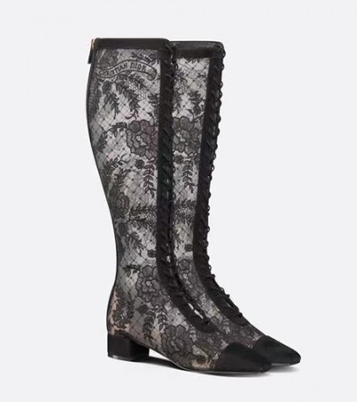 [홍콩명품,Christian Dior] 디올 25SS 로고 여성 레더 가죽 레이스 장식 롱 구두 부츠 (블랙), SE5580, GHS, 명품스니커즈,운동화,구두,로퍼,하이탑,신발 > 여성몰