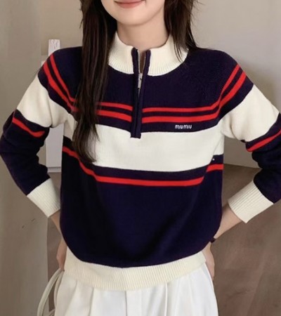 • [홍콩명품,MIU MIU] 미우미우 25SS 로고 여성 하프지퍼 니트 스웨터 (2컬러), BM22693, TBG, 레플리카의류,미러급사이트