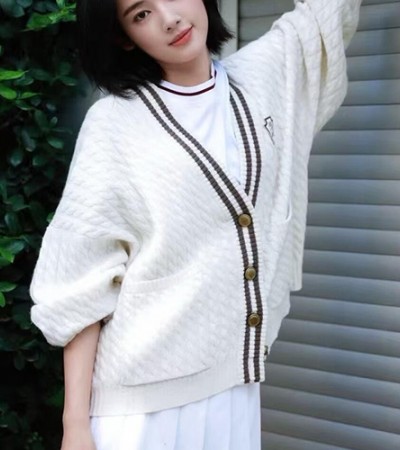 • [홍콩명품.Brunello Cucinelli ] 브루넬로 쿠치넬리 25SS 로고 여성 V넥 니트 가디건 (아이보리), BM22699, TBG, 레플리카의류,미러급사이트