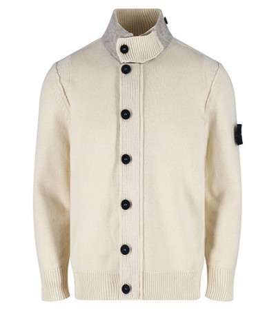 [홍콩명품.Stone Island] 스톤아일랜드 25SS 로고 탈부착 하이넥 니트 가디건 자켓 (아이보리), BM22784, JL, 레플리카의류,미러급사이트 > 남자의류