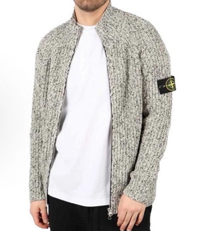 • [홍콩명품.Stone Island] 스톤아일랜드 25SS 로고 탈부착 터틀넥 니트 가디건 집업 자켓 (그레이), BM22787, JL, 레플리카의류,미러급사이트