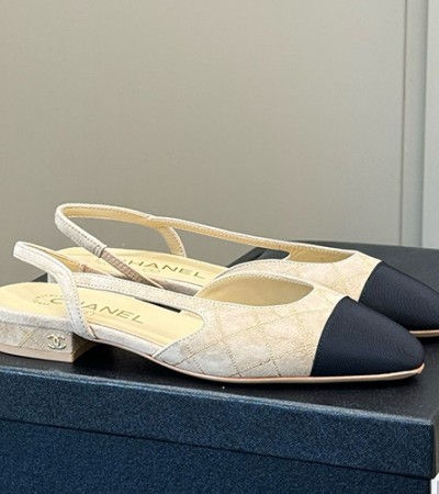 • [홍콩명품.CHANEL] 샤넬 25SS 로고 여성 2톤 레더 가죽 단화 구두 샌들 (베이지), SE5722, GHS, 명품스니커즈,운동화,구두,로퍼,하이탑,신발